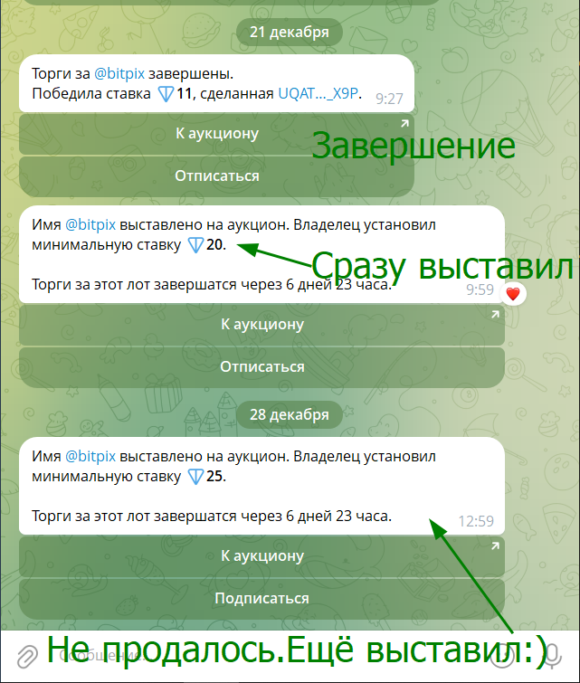 Я всё же продаю имя. Ставку в 10 TON как говорил перебьют почти сразу, если username хоть немного интересен. А там уже открытая борьба - кто хочет, тот и делает ставки.